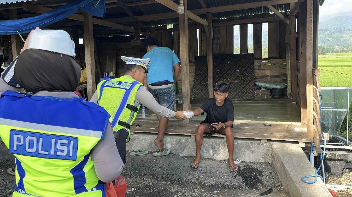 - Aksi Humanis Polantas Luwu Utara, Berbagi Makanan untuk Sopir Terdampak Blokade
